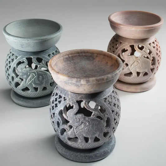 Hand Carved Elephant Soapstone Oil Burner in Green